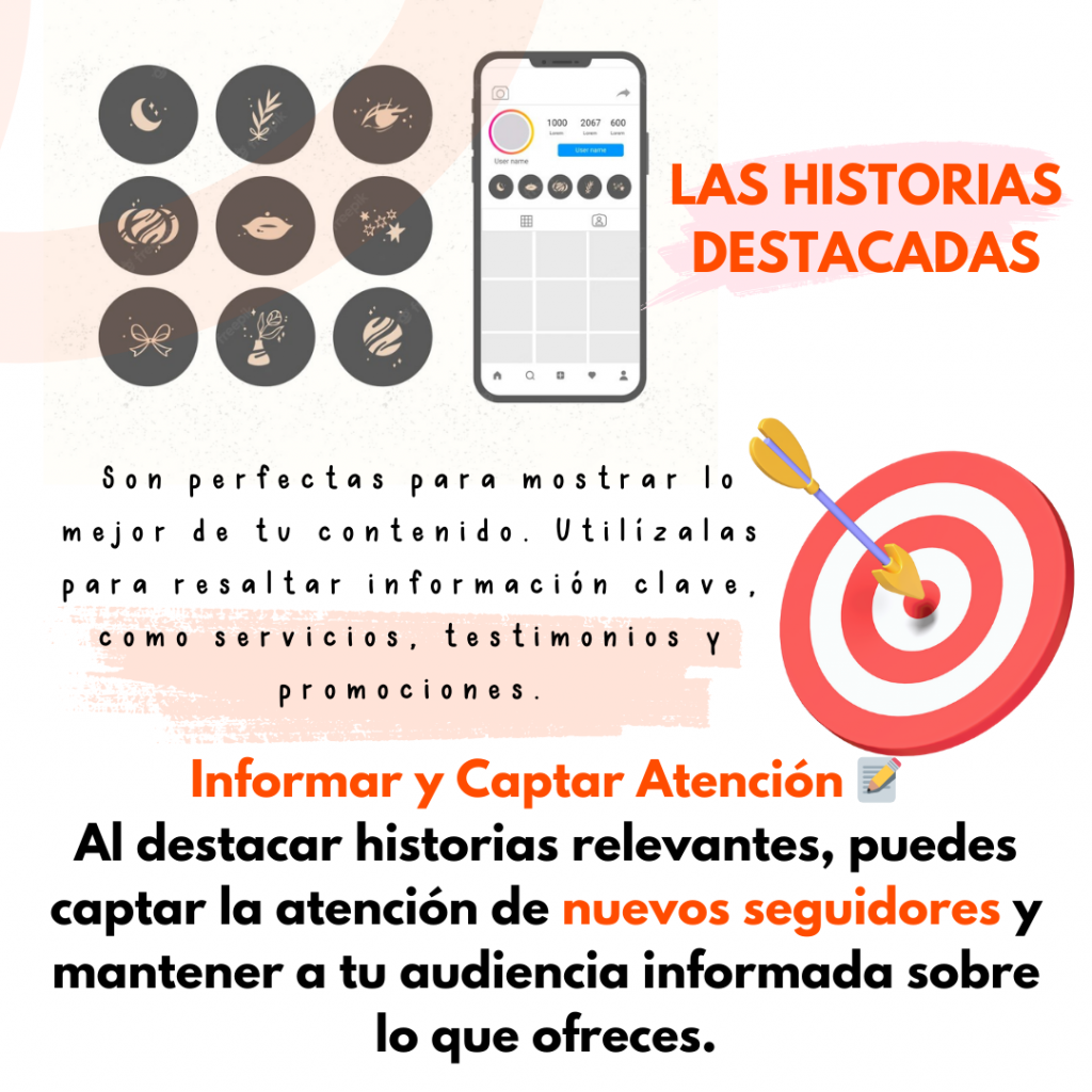 Las historias destacadas son la primera impresión permanente que tendrán tus seguidores cuando visiten tu perfil. Este formato te permite organizar el contenido más importante de tu marca en secciones accesibles en todo momento.